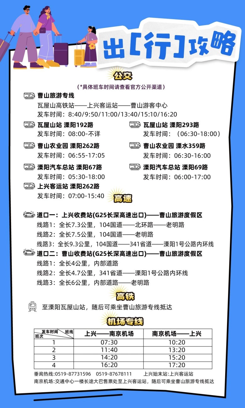 溧阳曹山旅游度假区位于溧阳市西北,与南京的高淳、溧水接壤,规划总面积 50.85 平方千米。其中,省级旅游度假区创建区面积9.02 平方千米,人口1.1万人。曹山旅游度假区入口处即有宁杭高铁瓦屋山站和宁杭高速上兴、…
